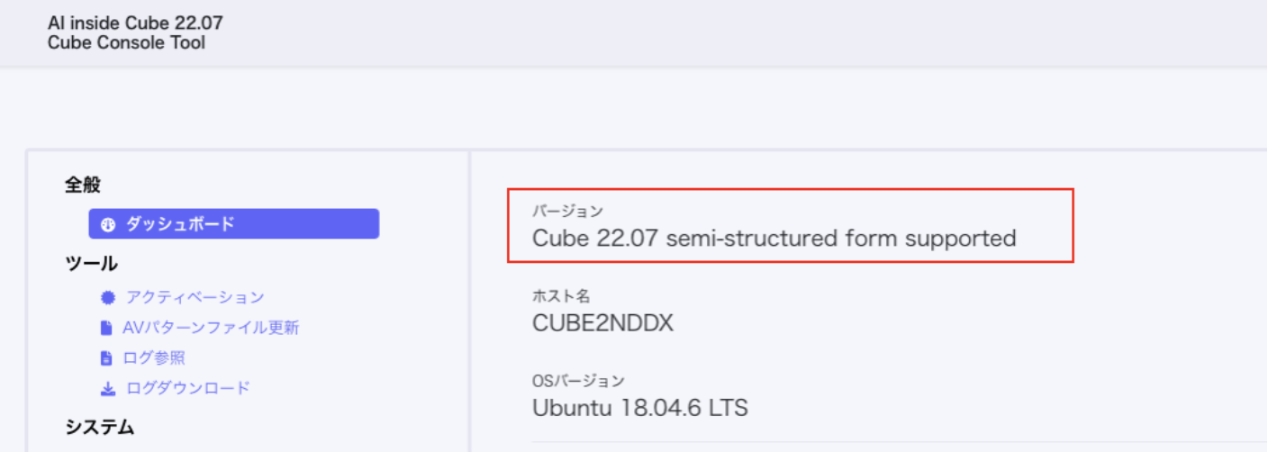 AI inside Cubeのバージョンは、コンソールツールから確認することができます。