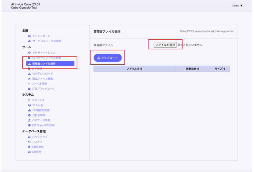 「管理者ファイル操作」に移動し、「ファイルを選択」ボタンをクリックします。