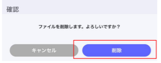 確認ダイアログで「削除」ボタンを押すと、ファイルの削除が可能です。