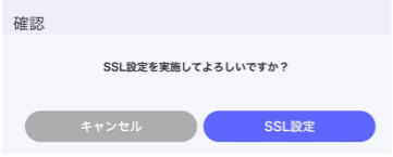 SSL 設定ボタンをクリックすると以下の確認メッセージが表示されるので、SSL 設定ボタンをクリックします。