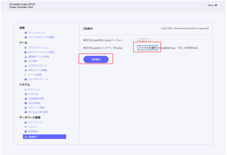 「DB 移行」ボタンをクリックします。
